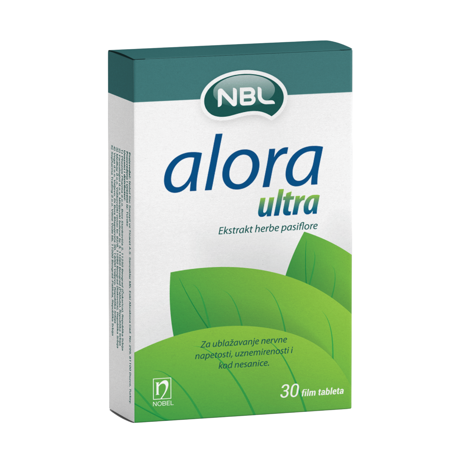 - Alora ultra u jednoj tableti sadrži 200mg suvog ekstrakta herbe pasiflore I dostupna je u pakovanju od 30 tableta.